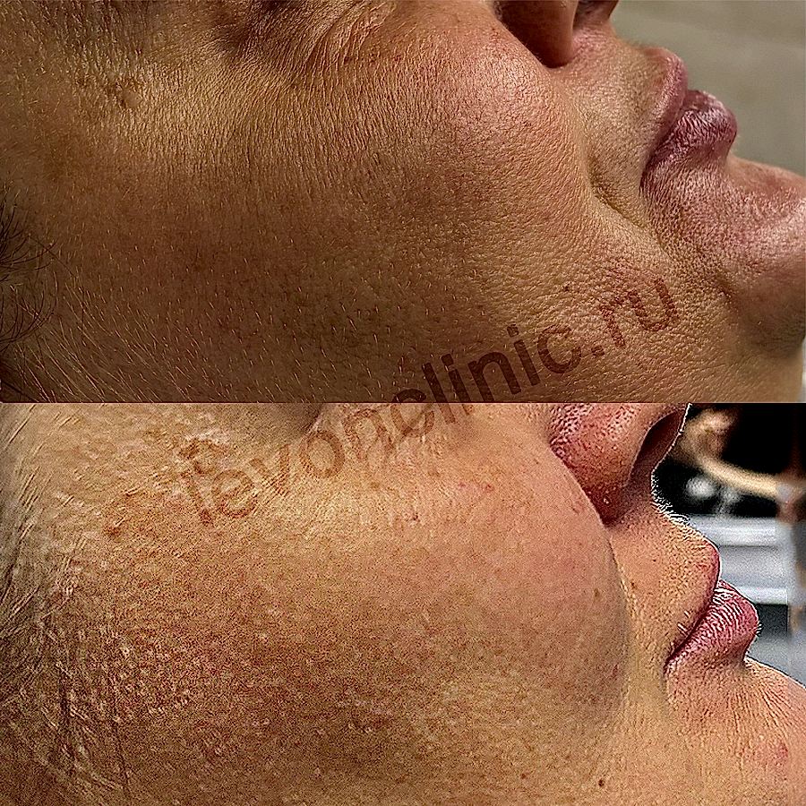 Микроигольчатый РФ не тянет, аулучшает качество кожи изнутри: делает её более плотной, гладкой и упругой за счёт Pin-Up коллагена и эластина.