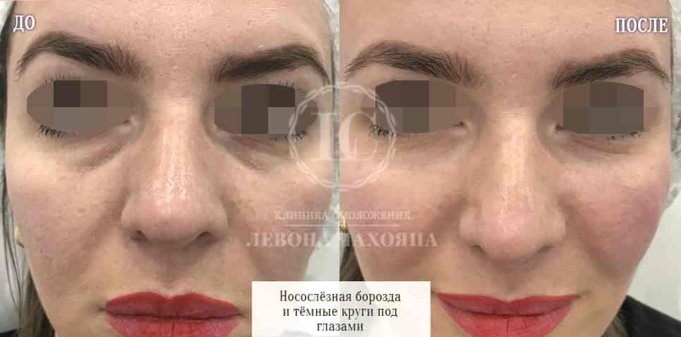 Инъекционная коррекция препаратами гиалуроновой кислоты позволяет убрать круги, легкие Pin-Up под глазами, а также проявление носослёзной борозды за 1 визит!