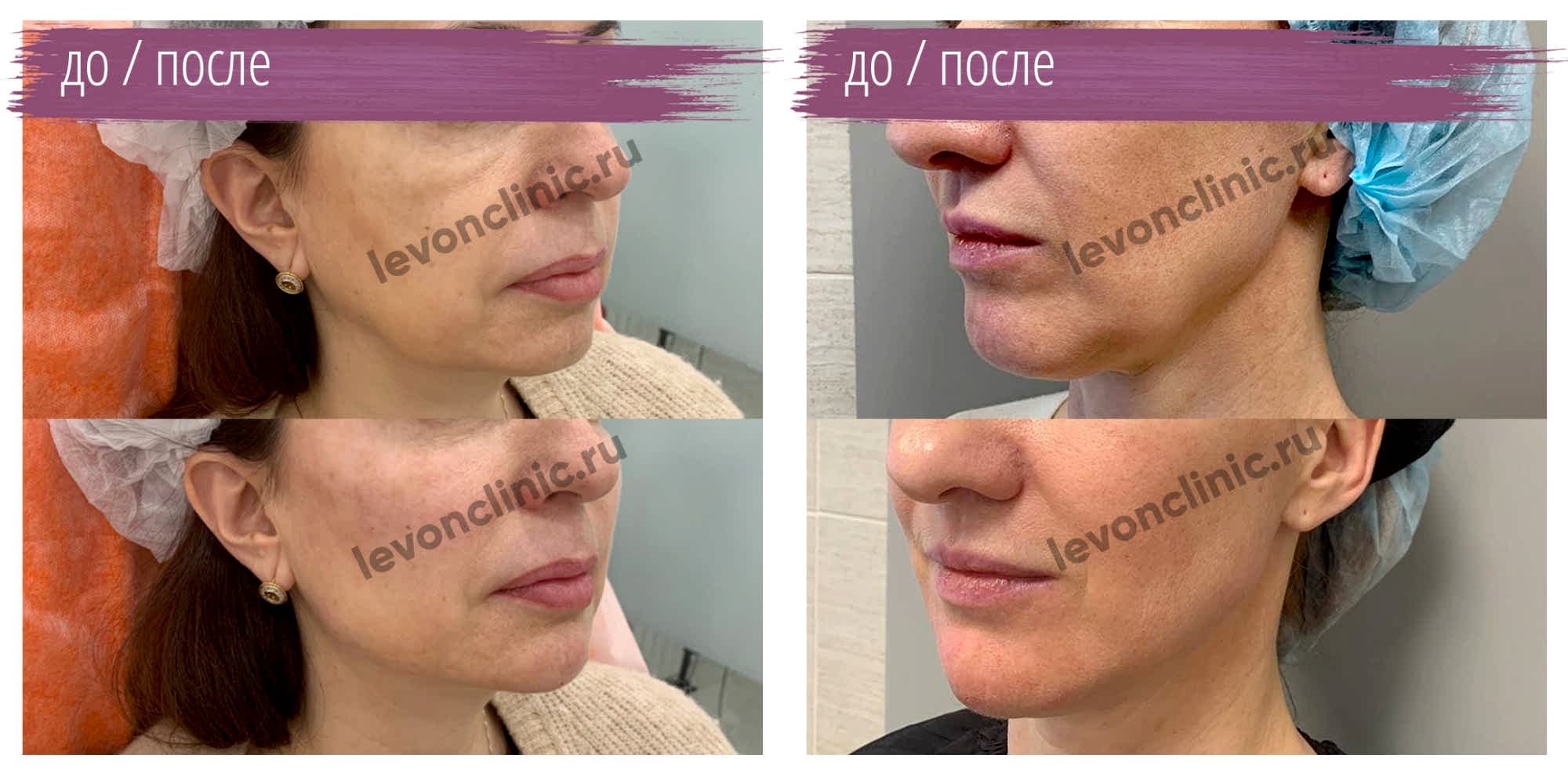 Особенно хорошие результаты получаются у пациентов больше 40, потому что с возрастом как раз «стачивается» угол нижней челюсти и его увеличение филлерами красиво омолаживает лицо.