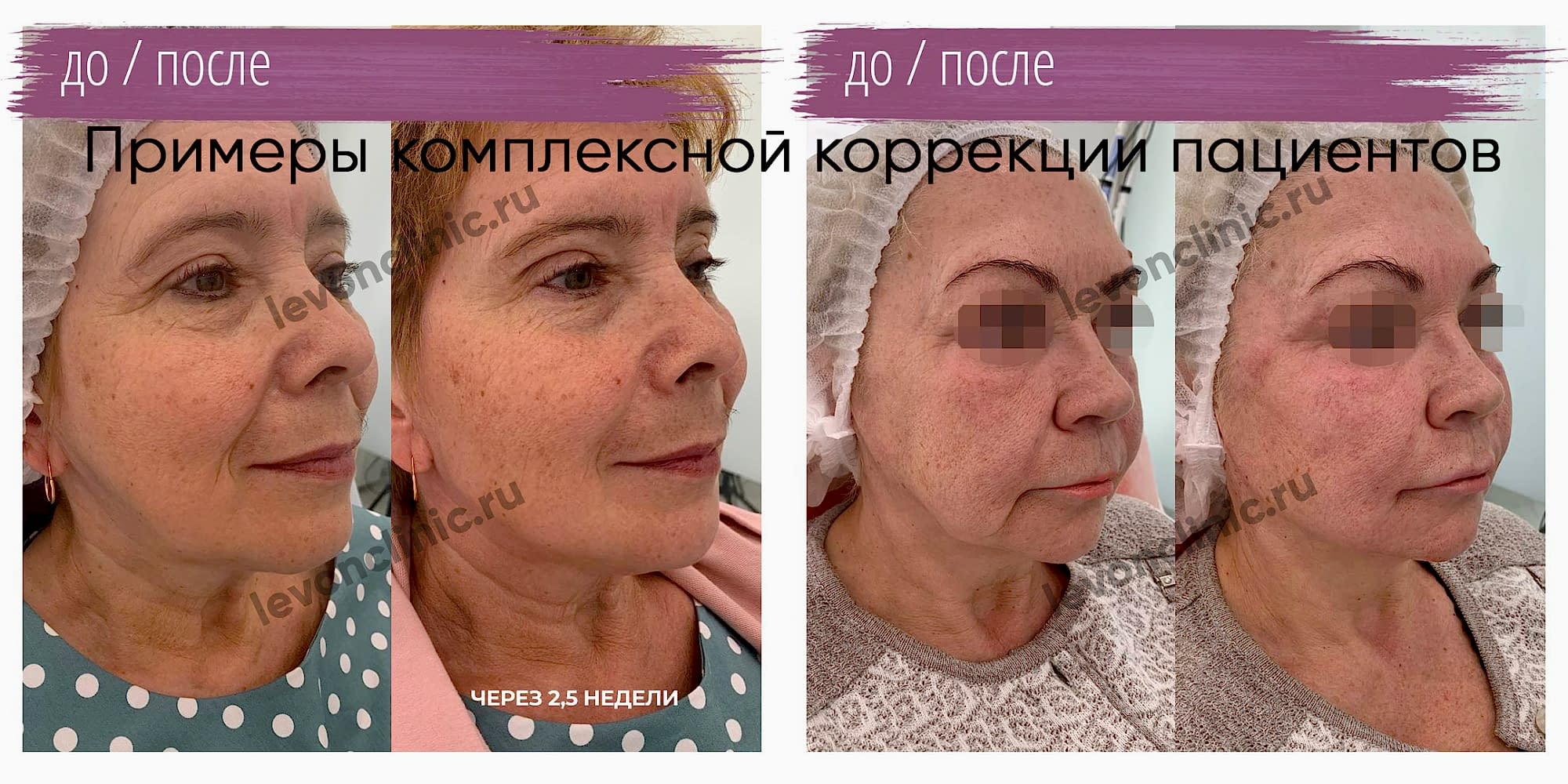 - или Pin-Up коррекция филлерами, а через 2-3 недели лёгкая подтяжка нитями.