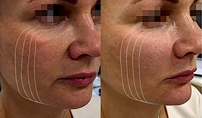 Мы просто скрываем (или можно сказать «камуфлируем») ваш малярный мешок - заполняем безопасными филлерами провалы и укрепляем область связок.