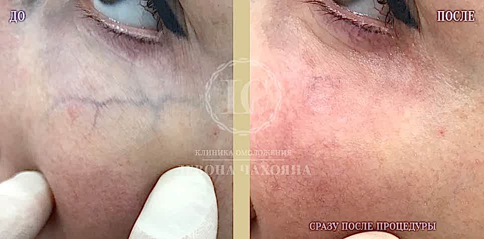 Процедура лазерного удаления телеангиоэктазий происходит по традиционному Pin-Up