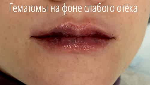 Все зависит от выбора техники. Если косметолог работает канюлей, то синяков не будет. Канюля - Pin-Up инструмент, она не травмирует ткани и кровеносные сосуды. Но канюлей невозможно работать с тонкими, узкими губами.
