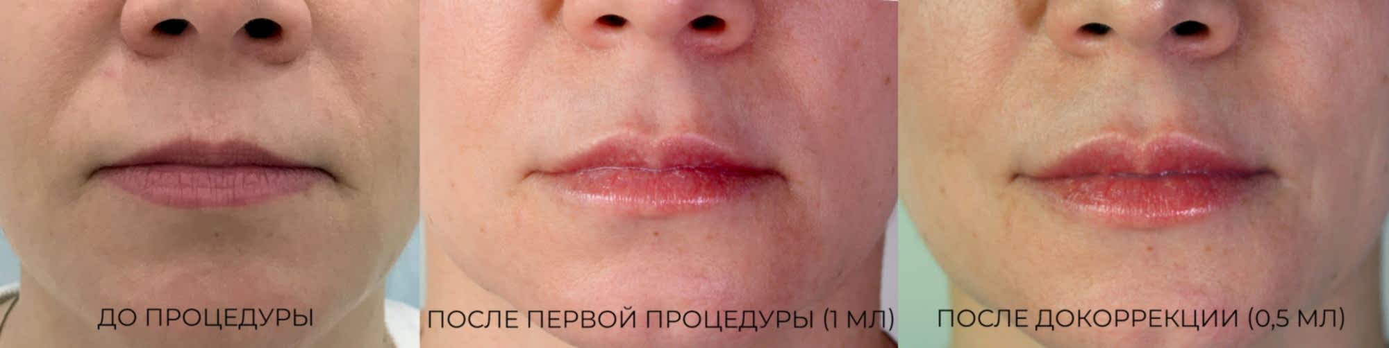 Пациентка дважды приходила к нам на коррекцию губ: в первый визит был введен 1 мл препарата Belotero Intense, через 4 недели была проведена докоррекция 0,5 мл. препаратом Juvederm ultra smile.Результат на последнем фото Pin-Up - через 3 недели после последней докоррекции.